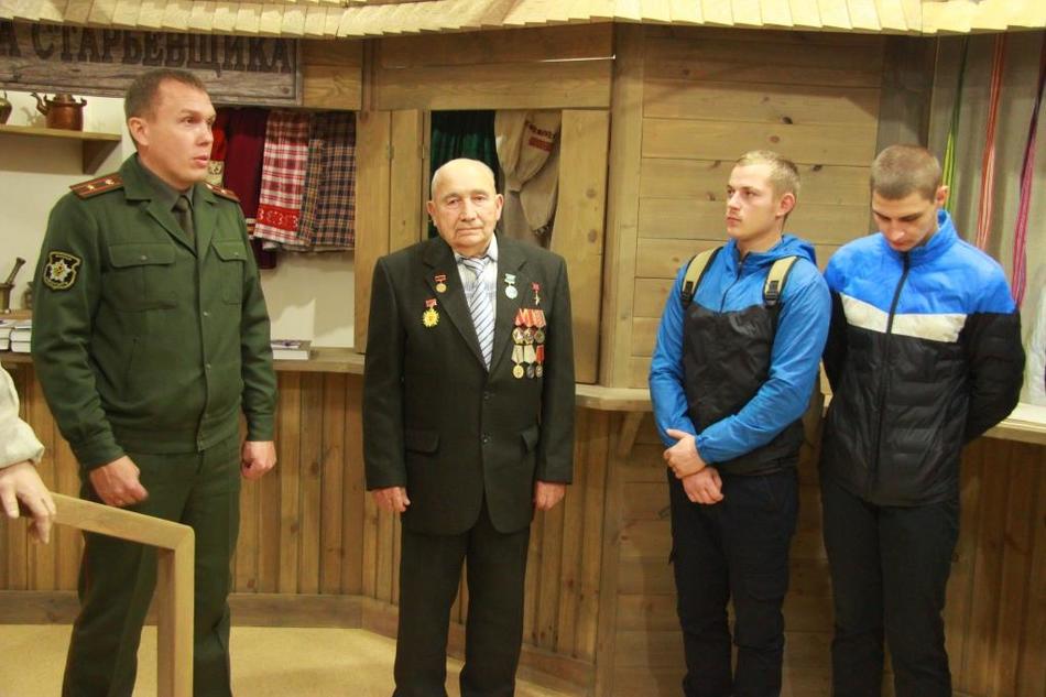 В зале «Ярмарочная торговля в Дрибине» призывники встретились с ветераном Социалистического труда Александром Алексеевичем Байковым, председателем райсовета ветеранов Виктором Антоновичем Гущей, начальником обособленной группы Дрибинского района военного комиссариата Горецкого и Дрибинского районов капитаном Андреем Андреевичем Красницким, которые сказали молодым людям слова напутствия и вручили хронику «Память. Дрибинский район».