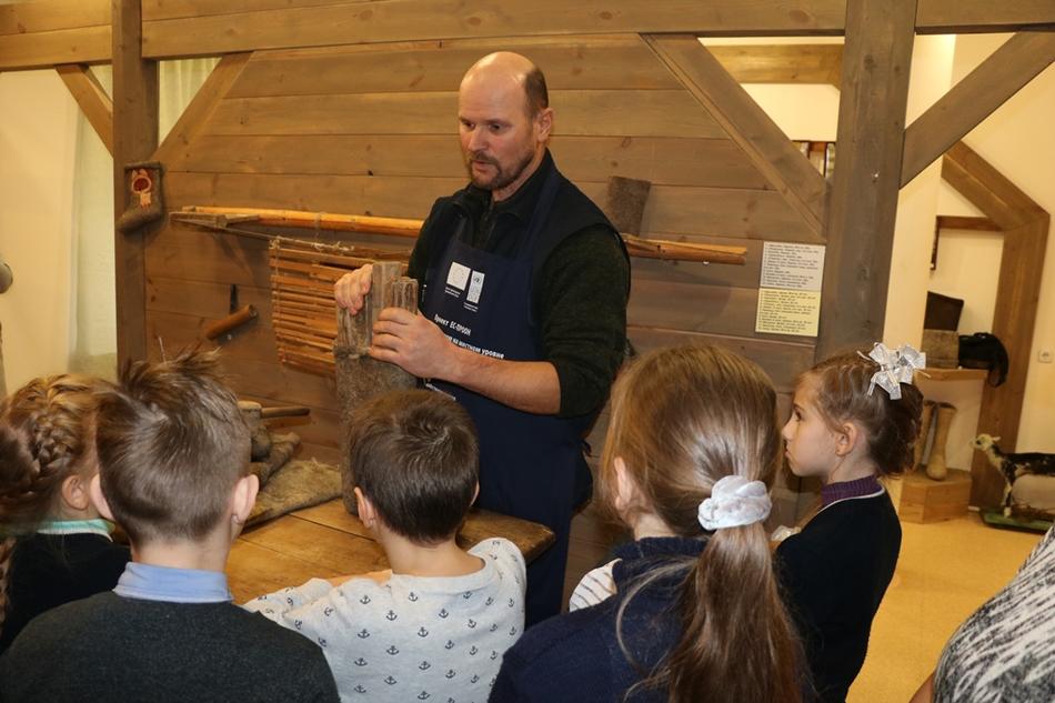 29 ноября, в последнюю пятницу месяца в стенах музея состоялся ежегодный праздник "День валенка". На увлекательное мероприятие были приглашены ученики Дрибинской школы 3"А" класса. В начале праздника сотрудники музея показали ребятам интересное представление "Старые сказки на новый лад", главными героями в котором были Баба Яга и Снеговик. После представления прошла познавательная беседа с матером-шаповалом, где мастер раскрыл много секретов данного ремесла. В конце праздника по традиции сотрудники музея угостили детишек сдобными булочками в форме валенка.