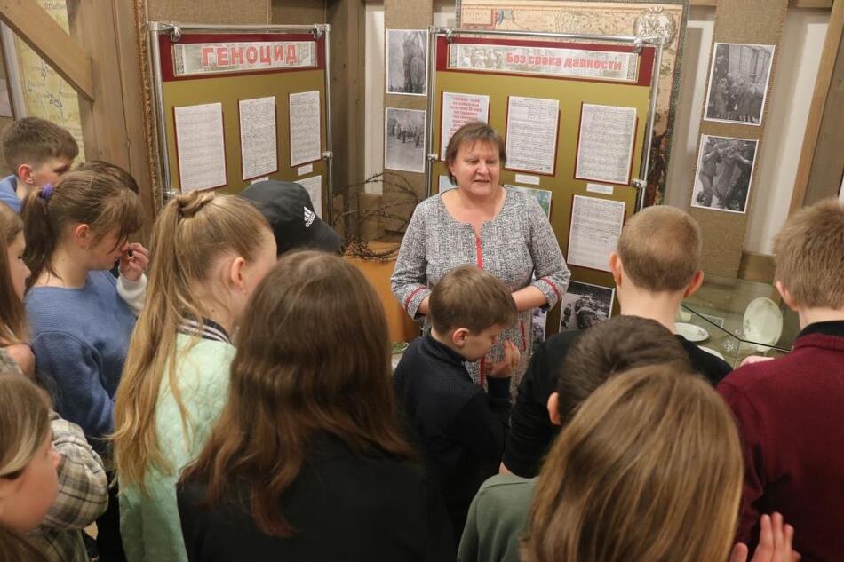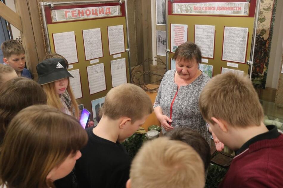 11 апреля в Дрибинском районном историко-этнографическом музее состоялась диалоговая площадка "Без срока давности", приуроченная Международному дню освобождения узников фашистских лагерей. Сотрудники музея провели тематическую экскурсию по выставке, посвященной теме геноцида белорусского народа в годы Великой Отечественной войны. На мероприятии был показан видеофильм - воспоминания Грековой Антонины Леоновны, уроженки Дрибинского района, которая в годы войны находилась в лагере смерти.