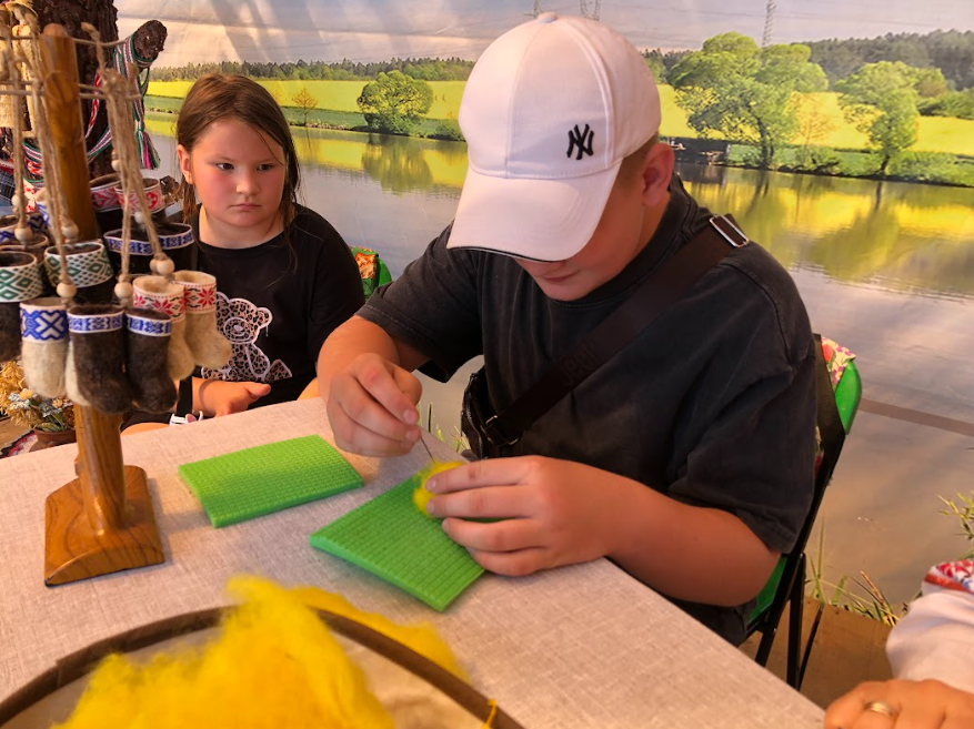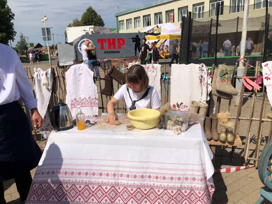 Особым вниманием пользовались мастер-классы: гости пробовали себя в мокром валянии, создавая миниатюрные сувенирные валенки, и в сухом валянии — изготавливая оригинальный сувенир из шерсти.