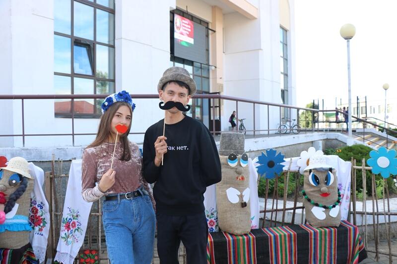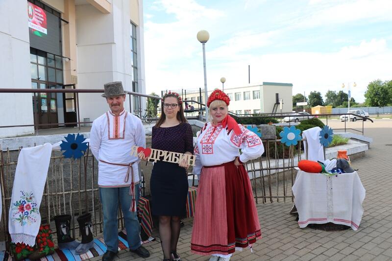 16 июля на центральной площади г.п. Дрибин в рамках акции РО РОО "Белая Русь" "Беларусы раЗАм" работники дрибинского историко-этнографического музея обустроили фотозону "В гости к шаповалам" с изделиями из цветной шерсти, где каждый желающий мог примерить понравившиеся изделия.