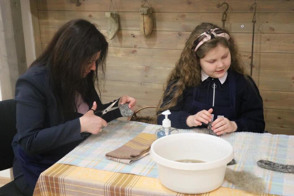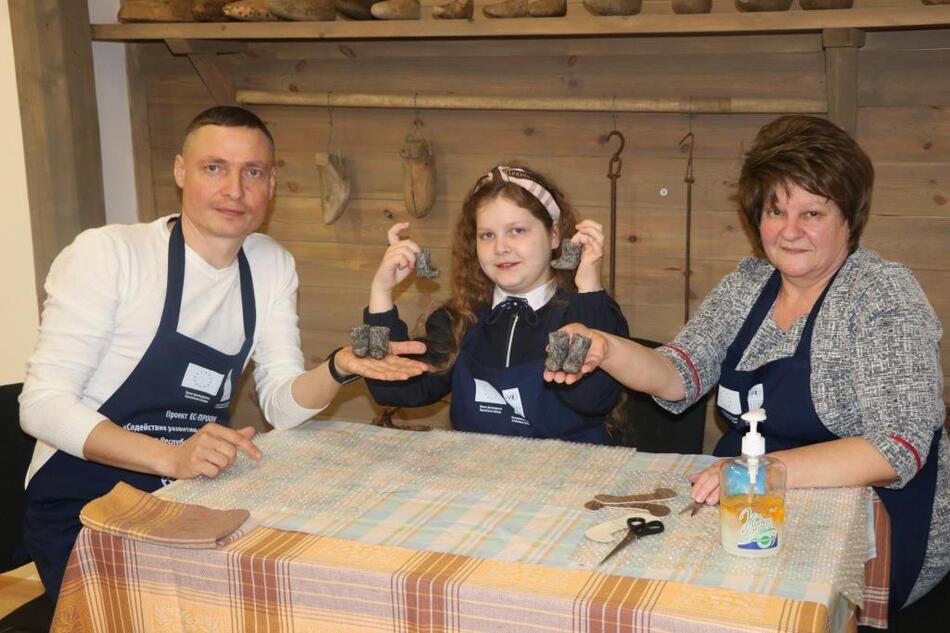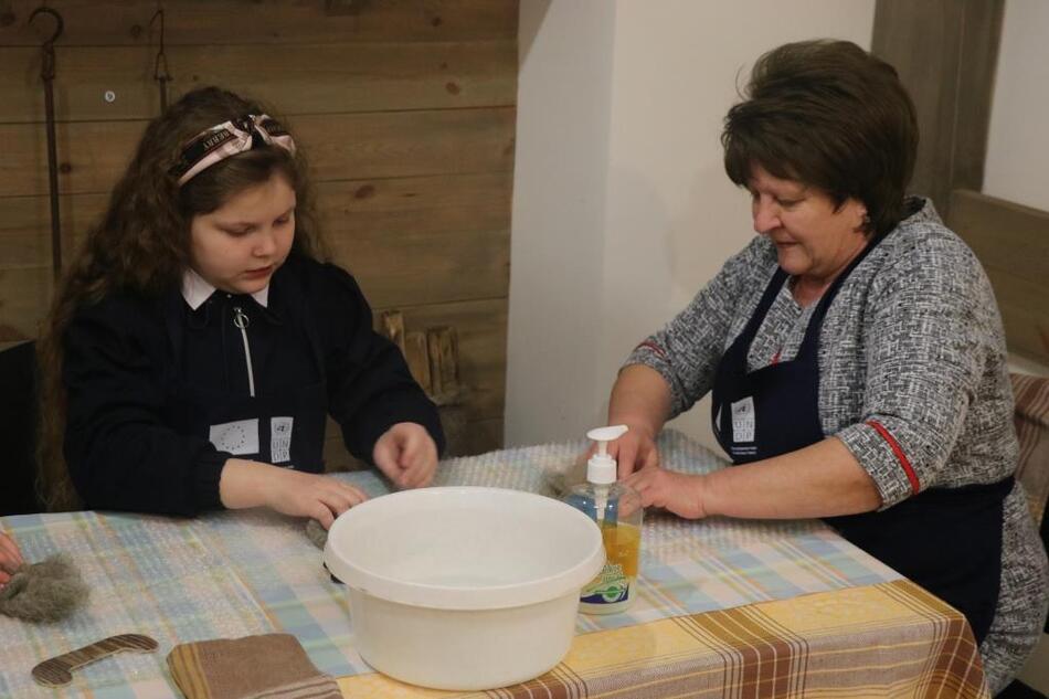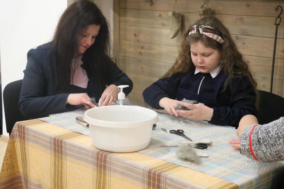 9 февраля семья Толкачевых из Могилева приняла участие в мастер-классе по изготовлению сувенирных валенок методом мокрого валяния. С большим интересом маленькая Виолетта и ее родители осваивали навыки шерстобитно-валяльного промысла.