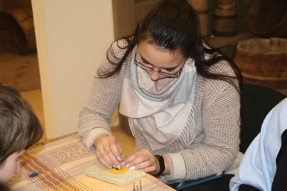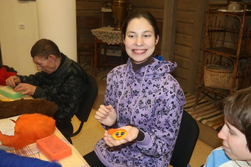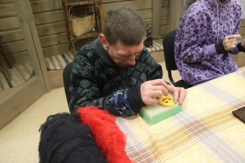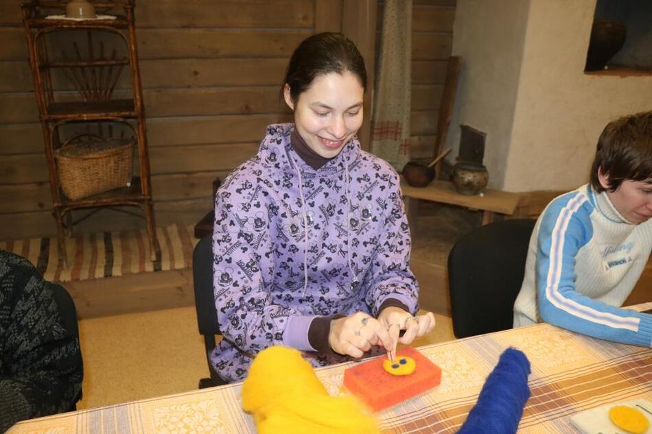 23 декабря сотрудники Дрибинского районного историко-этнографического музея провели мастер-класс по изготовлению новогодней игрушки "Смайлик" методом сухого валяния для посетителей отделения дневного пребывания для инвалидов и граждан пожилого возраста учреждения "Дрибинский районный центр социального обслуживания населения".