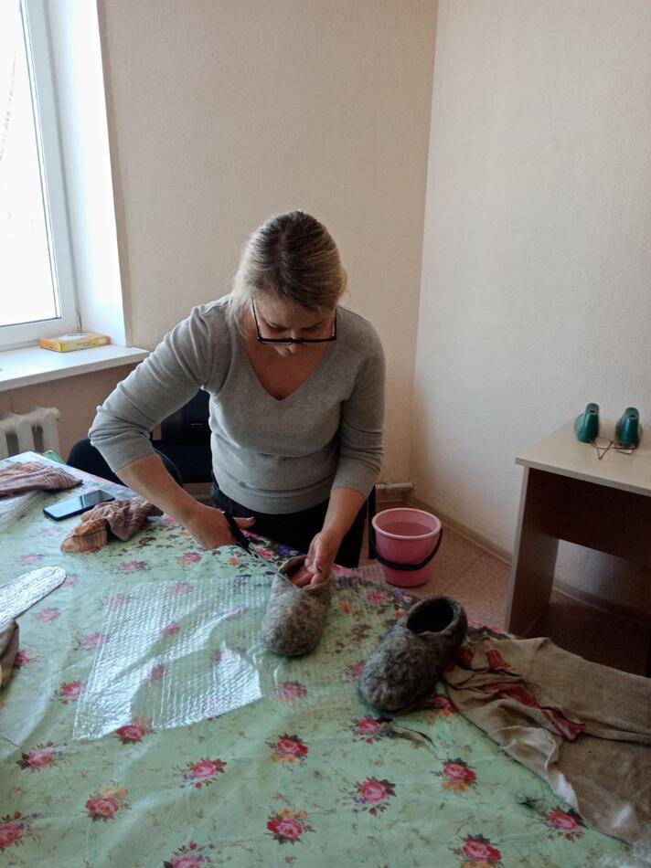 22 февраля мастер-шаповал Черепович Татьяна Михайловна провела мастер-класс в технике мокрого валяния по изготовлению тапок для работников государственного учреждения социального обслуживания "Быховский психоневрологический дом-интернат для престарелых и инвалидов".