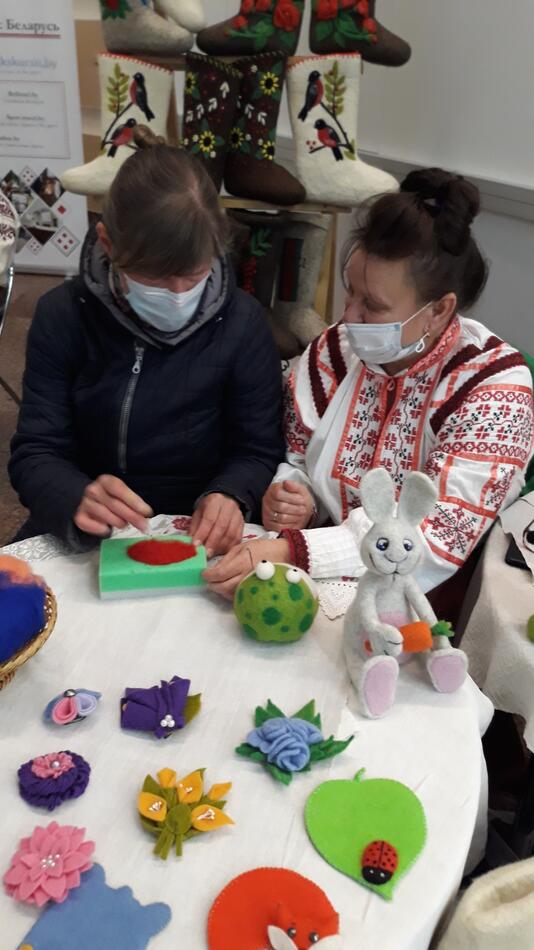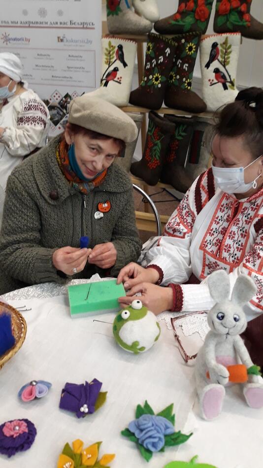 23 апреля в Минске состоялась 23-я международная весенняя ярмарка туристических услуг "Отдых-2021", которую проводит Национальный выставочный центр "БелЭкспо" совместно с Министерством спорта и туризма Республики Беларусь. Мастера из Дрибинского районного музея привезли на ярмарку работы, выполненные в разных техниках: от украшенных валенок и шапок-магерок до дизайнерских бус и сувениров из шерсти. На мастер-классе по изготовлению изделий из цветной шерсти все желающие не только познакомились с технологией, но научились основам этого ремесла.