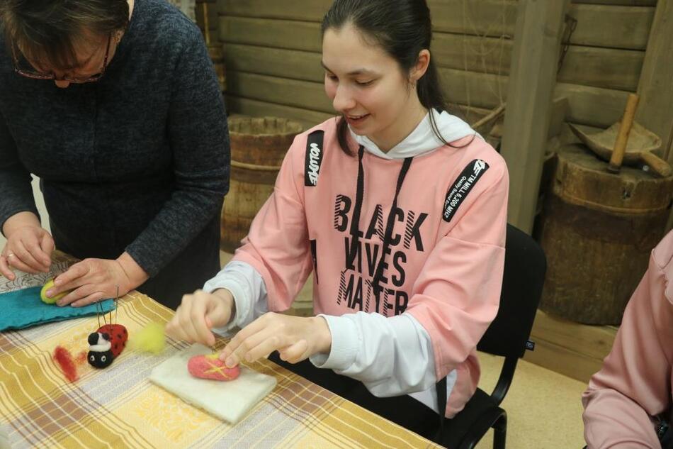 22 апреля в Дрибинском районном историко-этнографическом музее прошел мастер-класс в технике сухого валяния "Пасхальный сувенир" для посетителей отделения дневного пребывания для инвалидов и граждан пожилого возраста учреждения "Дрибинский районный центр социального обслуживания населения".