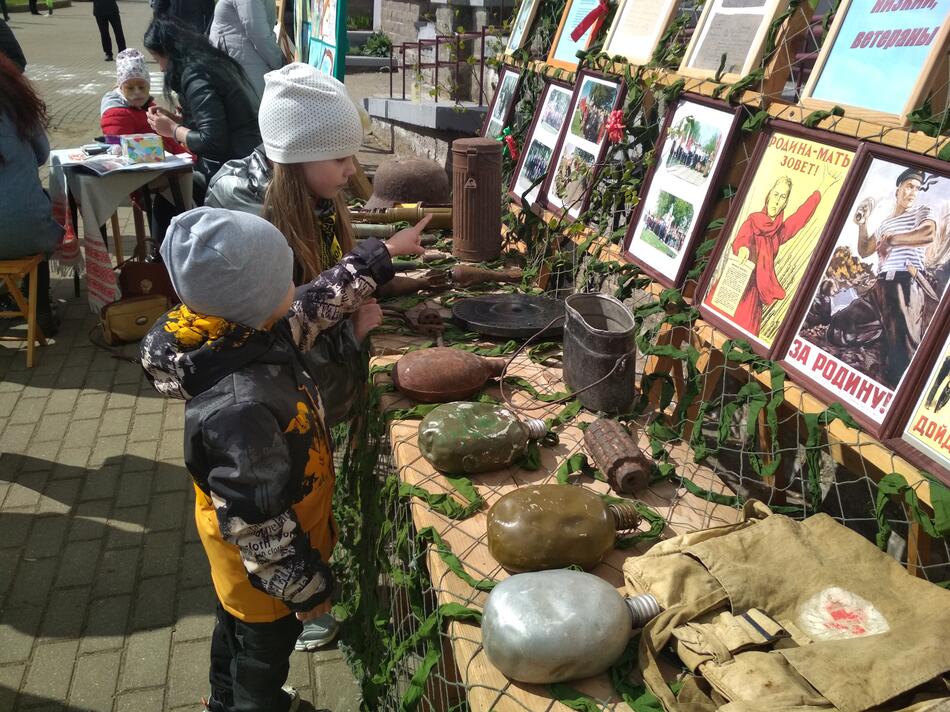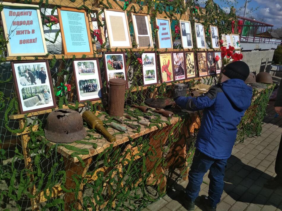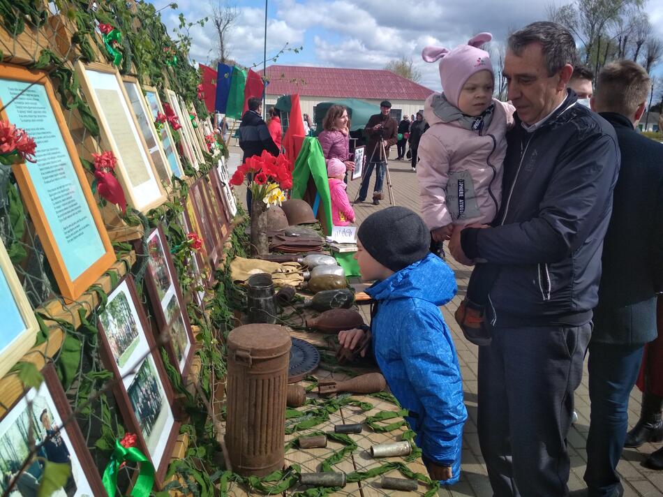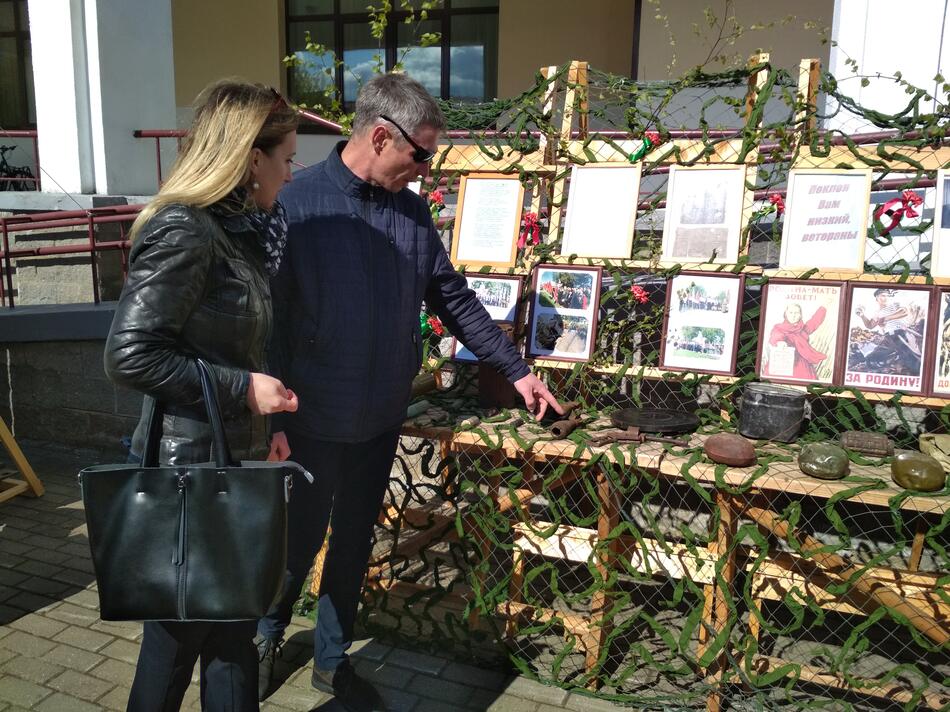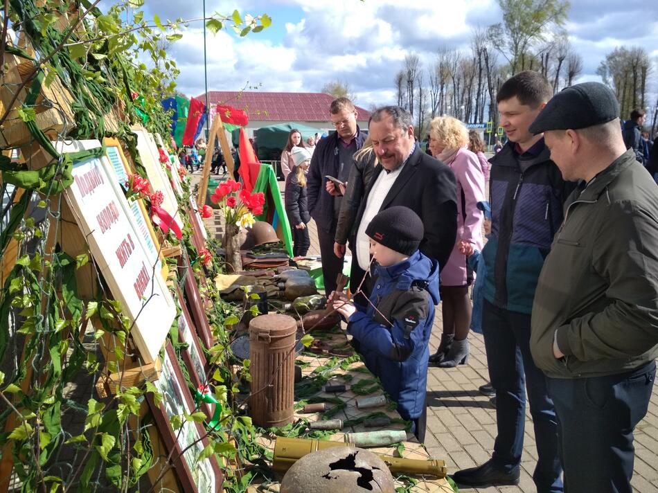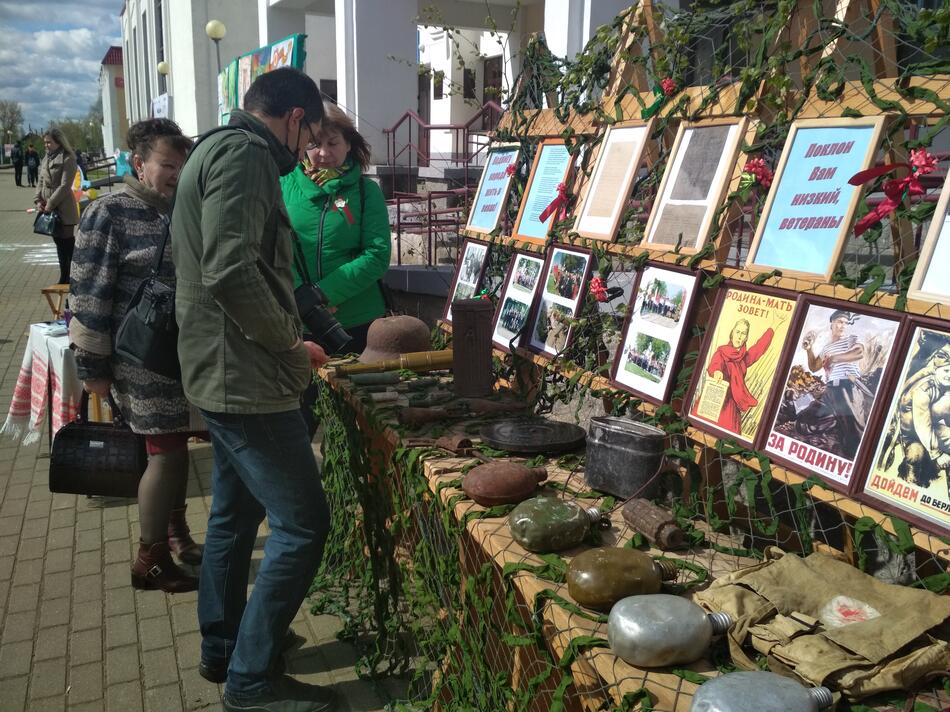 Выставка "Подвигу народа жить в веках" на центральной площади г.п.Дрибин в рамках празднования Дня Победы.