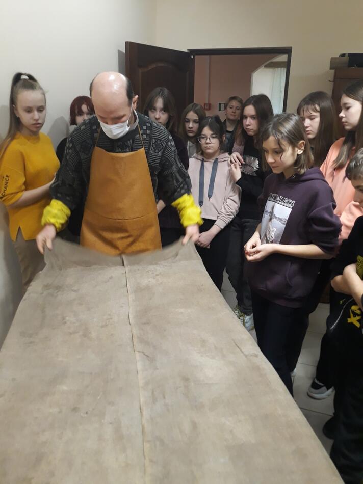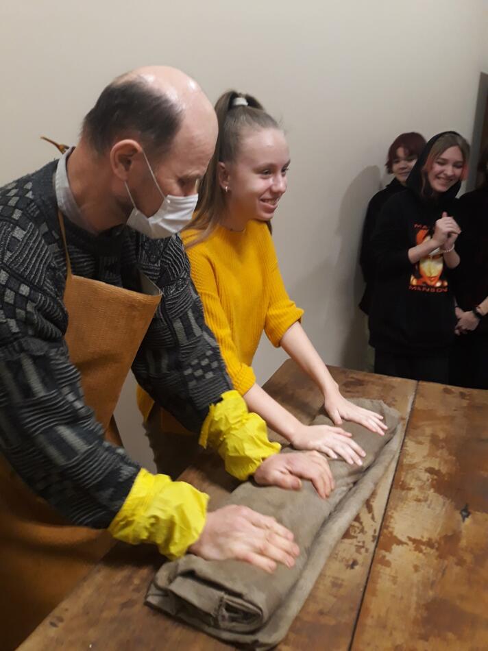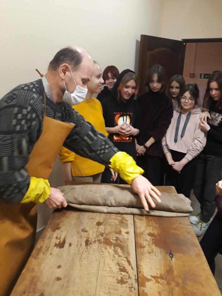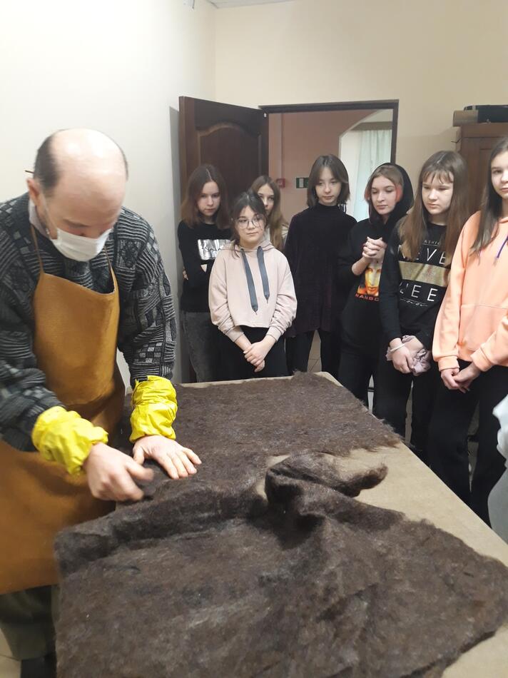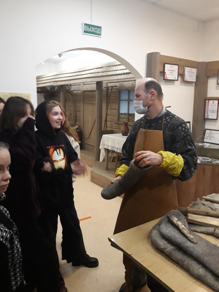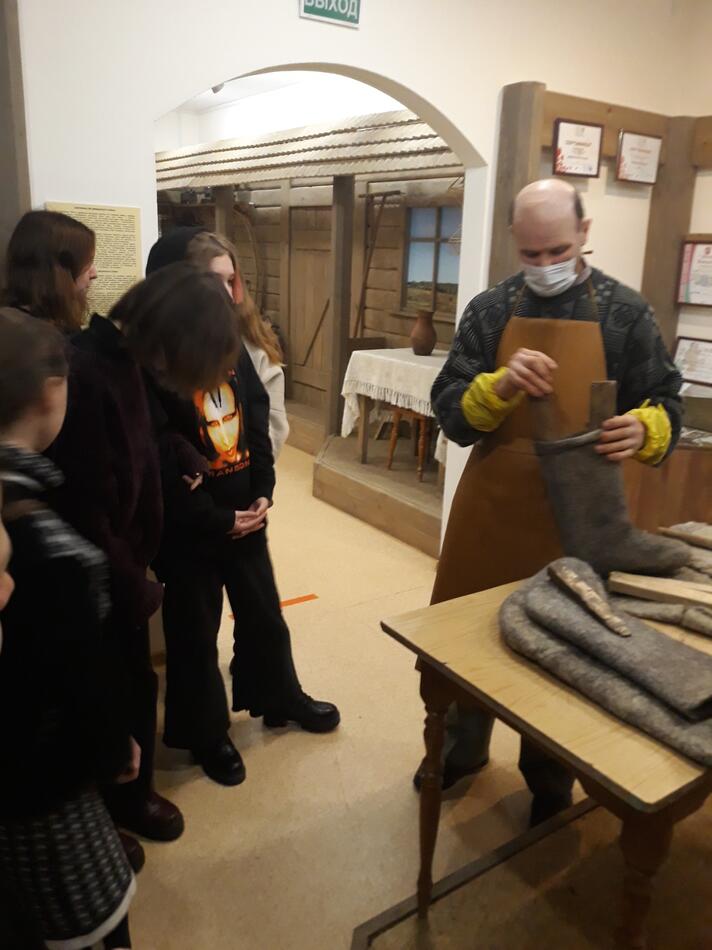 27 ноября государственное учреждение культуры "Дрибинский районный историко-этнографический музей" посетили учащиеся ГУО "Средняя школа №4 г. Горки". Сотрудники музея для школьников провели обзорную экскурсию по экспозиции музея, а мастер-шаповал Осиповский Владимир Станиславович продемонстрировал процесс изготовления валенок, который позволил ребятам поближе познакомиться с навыками шерстобитно-валяльного промысла.