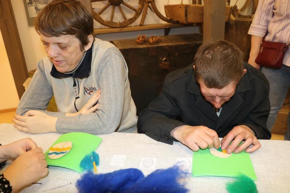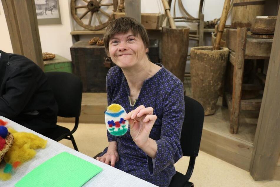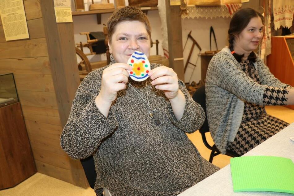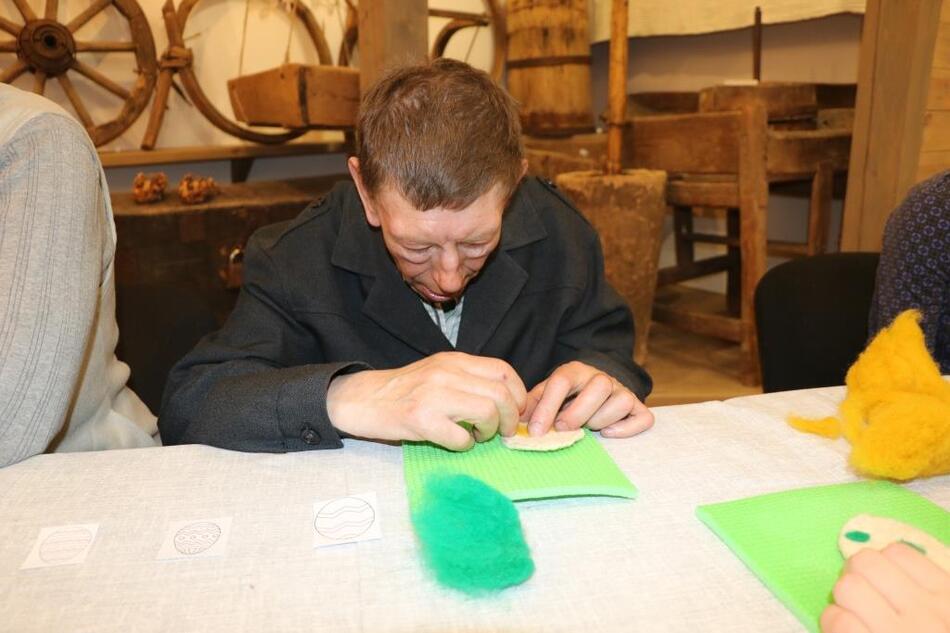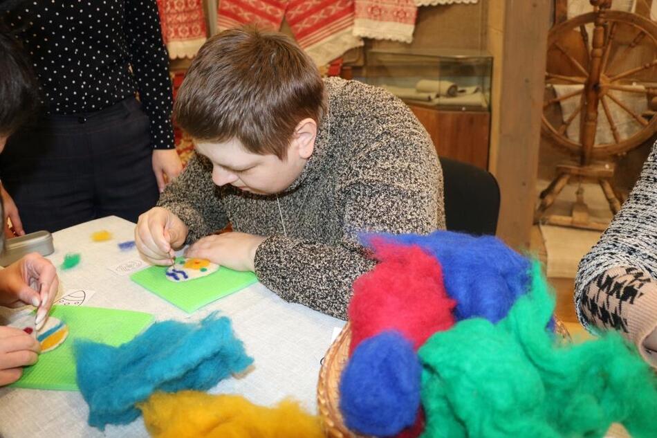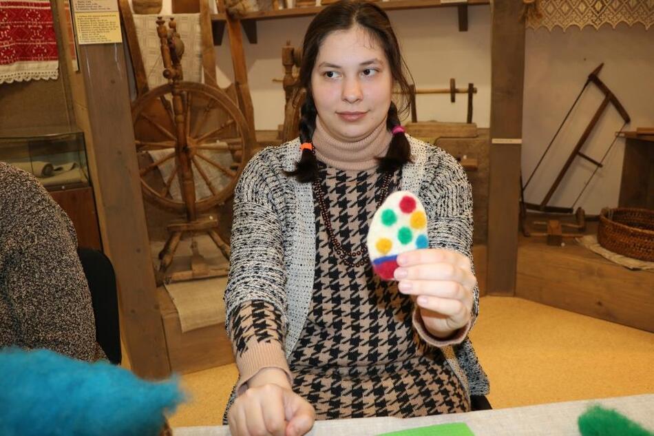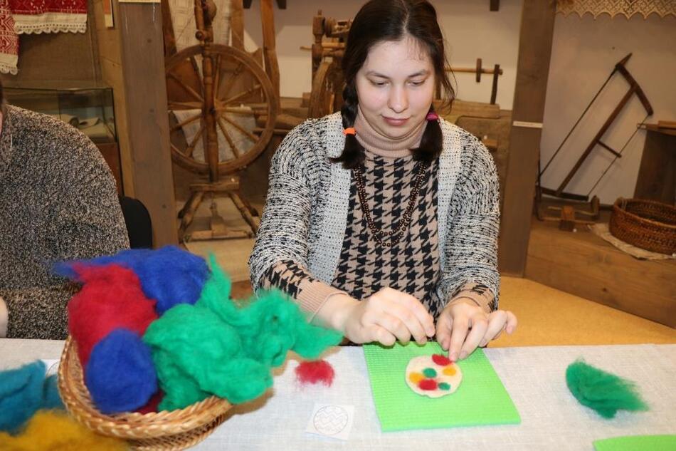 14 апреля в Дрибинском районном историко-этнографическом музее прошел мастер-класс в технике сухого валяния "Пасхальный сувенир" для посетителей отделения дневного пребывания для инвалидов и граждан пожилого возраста учреждения "Дрибинский районный центр социального обслуживания населения".