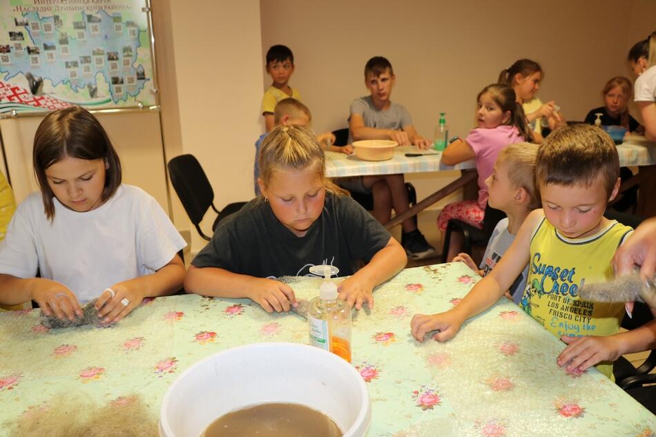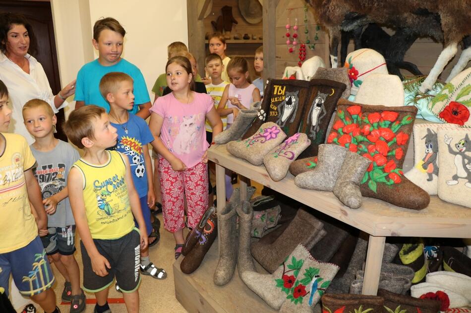 6 июля Дрибинский музей посетили ребята из оздоровительного дневного лагеря "Вандроўнік" ГУДО Горецкий центр туризма, краеведения, экскурсий детей и молодежи. Школьники познакомились с историей Дрибинского района, приняли участие в мастер-классе по изготовлению сувенирных валенок методом мокрого валяния.