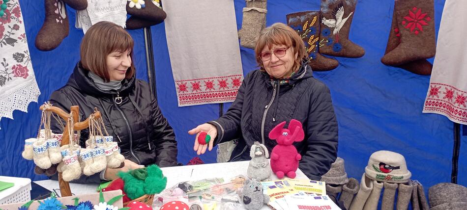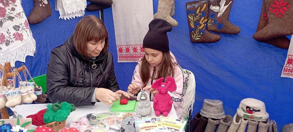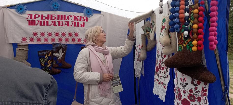 27 сентября 2025 года в агрогородке Жиличи Могилёвской области прошёл региональный праздник "Вераснёўскі фэст. Палац у Жылічах" - яркое и важное событие для местных жителей и гостей агрогородка. В рамках праздника сотрудники ГУК "Дрибинский районный историко-этнографический музей" организовали выставку, на которой были представлены разнообразные валяные изделия: теплые валенки, шапки-магерки, рукавицы, сувениры из цветной шерсти. Посетители получили возможность познакомиться с уникальным шерстобитно-валяльным промыслом, а также принять участие в мастер-классе по изготовлению шерстяных украшений и аксессуаров.