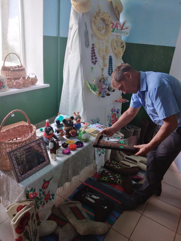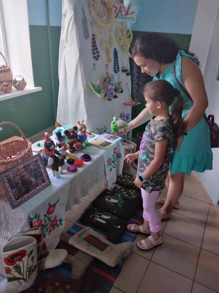 9 августа на участках для голосования в г.п. Дрибин экспозицию изделий представили сотрудники Дрибинского районного историко-этнографический музея.